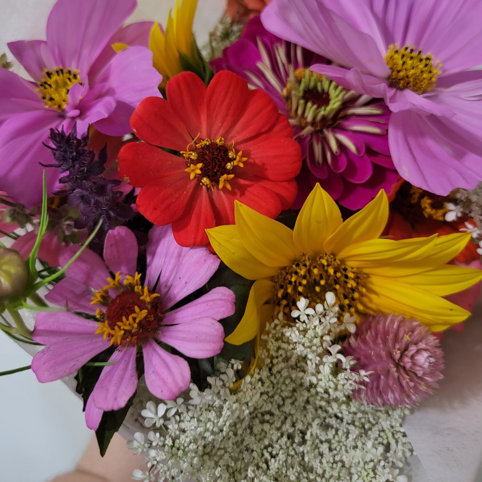 At Skomp Gardens, I believe flowers do more than beautify a space—they bring people together. Every arrangement is created with care, using a local-first approach: grown on my own farm when possible, sourced from other local growers in season, and carefully chosen from trusted wholesalers as needed.